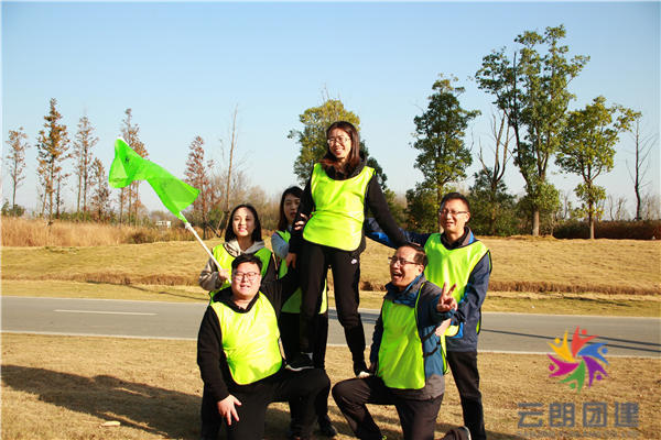 团队文化展示环节,特殊点在有一位队员必须双手双脚离开地面且腾空5秒以上,方便战地记者拍特写。
